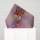 White tissue paper printed with orange foxes and pink flowering branches on a pink and purple watercolor backdrop with hints of orange and green tones. Designed with card-making in mind you are able to get 12 separate images roughly 5x5 inches. The repeat pattern is still great for wrapping gifts.