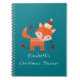 A charming Christmas Planner notebook with a retro flair. An illustration of a cute orange fox, wearing a red santa hat surrounded by Christmas holly decorations. A sweet little festive forest animal. Customise with your own name.