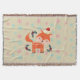 A charming christmas blanket with a retro flair. An illustration of a cute orange fox, wearing a red santa hat surrounded by christmas holly decorations. A sweet little festive forest animal. Set on a background with pink and blue snowflakes.