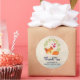 Birthday stickers with a grunge-y cream coloured background with trendy faint geometric shapes. Layered over top is a cartoon drawing of a cute orange fox sleeping peacefully. A green leaves wreath with 3 little red hearts behind.  Text says: Thank You for coming to <name's> birthday party. Personalise with a name or other text.