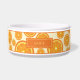 Destei's cartoon illustration of an orange fruit slice as a pattern. There is also a personalizable text area for a name. This fruity design is ideal for pets with fruit theme names such as "Orange", "Clementine" or "Satsuma", for example. The design is also great for the warm summer months to add some decorative detail to any pet's eating area.