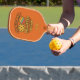 Orange fun quote retro monogram pickleball paddle