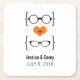 Quirky and chic Geeky Glasses Wedding Paper Coasters featuring a orange heart flanked by two pairs of geeky eyeglasses, a manly pair and a girly pair representing the groom and bride. These offbeat but sophisticated coasters are perfect for your nerdy wedding! Easy to customise, simply add the details of your big day in the text fields provided. Click on the "Customise It" button to find additional personalisation options.