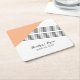 Modern and trendy Geometric Stripe Wedding Paper Coasters with an orange triangle and thinly striped accent. These simple yet elegant coasters are set up to be easily customised with your wedding information. Find more customisation options by clicking Customise It.