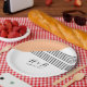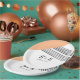 Modern and trendy Geometric Stripe Wedding Paper Plates with a orange triangle and thinly striped accent. These simple yet elegant plates are set up to be easily customised with your wedding information. Find more customisation options by clicking Customise It.