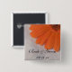 Orange Gerber Daisy and White Satin Wedding 15 Cm Square Badge