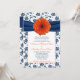 Orange Gerber Daisy Navy Floral Wedding Invitation