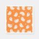 This design features a playful Halloween-themed pattern with a vibrant orange background. The design showcases an array of cute, cartoonish ghosts in soft, off-white tones. Each ghost has a unique and endearing expression, ranging from cheerful and smiling to slightly surprised or sleepy. Scattered between the ghosts are small, whimsical star shapes in a pale yellow, adding a touch of magic and fun to the overall design. The pattern exudes a lighthearted and festive spirit, perfect for the Halloween season.