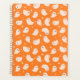 This design features a playful Halloween-themed pattern with a vibrant orange background. The design showcases an array of cute, cartoonish ghosts in soft, off-white tones. Each ghost has a unique and endearing expression, ranging from cheerful and smiling to slightly surprised or sleepy. Scattered between the ghosts are small, whimsical star shapes in a pale yellow, adding a touch of magic and fun to the overall design. The pattern exudes a lighthearted and festive spirit, perfect for the Halloween season.