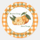 Orange gingham and a vintage illustration of mandarin oranges with text templates in a classy font pairing for you to customise with your own private label details.