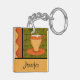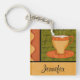 Orange Gold Green Coffee Cup Art Custom Name Key Ring