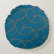 Orange Gold on Blue Music Note Pattern Round Cushion