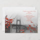 Lovely black and white photo of the Golden Gate bridge with fog rolling in. The beautiful orange flowers makes the invite unique. Use these lovely wedding invitations to invite your friends and family to your wedding. This design on your cards will add a special touch to your wedding. Each invitation comes with a white envelope.