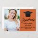 This orange senior photo graduate announcement card features elegant black script next to your high school or college graduate photograph for the senior class of 2025. Customise with your name in cursive script under the lovely calligraphy and send to friends and family.
