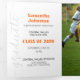 Elegant script announces your graduate over your favourite senior photo on the front. Block for their name on the front, and all the ceremony details inside along with two more pictures. Space on the back for a thank you message to friends and family. Design available in school colours of red, orange, purple, green, blue, burnt orange, maroon, and black. Matching products available.