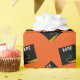 Creative graduation gift wrap and party decoration featuring black and gold graduation cap on an orange background. Edit text to add grad's name and senior class year.