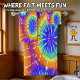 Orange green and yellow tie dye rainbow colour design .This item will brighten up any room at any party.