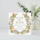Sophisticated and rustic, this botanical save-the-date photo invitation features an elegant boho design with a purple lavender wildflower wreath.