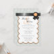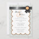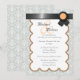 Beautiful invitations with a heather grey & white damask pattern and a black ribbon design with orange at the top.