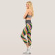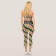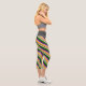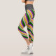 This leggings design features stripes colored orange, grey, purple, dark green, and white.