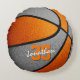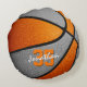 This basketball team colours pillow for a boy or girl features a basketball with alternating orange and grey recolored panels - personalise with player name in an "autograph" style font overlying the athlete's jersey number - by katz_d_zynes