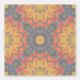 This peel and stick wallpaper is a captivating blend of warm and cool tones. Predominantly, it features vibrant oranges and yellows in the large, stylised flowers. These flowers have eight petals each, creating a symmetrical and visually appealing pattern. Against a dark grey background, the flowers stand out beautifully. The background itself is adorned with smaller geometric shapes, including squares and dots, in lighter grey tones.