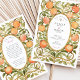 Celebrate your union with this stunningly unique wedding invitation, inspired by the enchanting elegance of the Art Nouveau movement. This design features a lush watercolor illustration of ripe oranges and delicate white orange blossoms, creating a vibrant and cheerful frame. The fruit and flowers are gracefully intertwined with stylised green leaves and vines, forming an intricate border reminiscent of a sun-drenched grove. An ornate oval frame in an antique gold tone beautifully encloses your wedding details, which are presented in timelessly elegant typography. Perfect for a summer, citrus-themed, Tuscan, or destination wedding, this invitation is a work of art that will captivate your guests.
