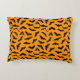 This accent pillow features a spooky pattern of flying black bats with yellow eyes on an orange background, the perfect Halloween decoration for bat lovers.