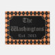 An orange and black colour scheme decorates this Halloween Welcome doormat. Personalise this doormat by changing the information to suit your needs. The design is from original art.