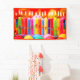 Bright colours make this generic, reusable banner fun for all ages. With candles and balloons, this banner can be used over and over.