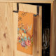 Proudly hang this kitchen towel on Thanksgiving showing a pumpkin surrounded by a fall floral design