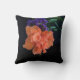 Orange Hibiscus Flower Dramatic Black Cushion