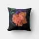 This dramatic black pillow features the closeup of a fancy orange Hibiscus blossom with purple flowers and green leaves. This vibrant tropical flower is highlighted against dramatic. Feel the Tropics of this bright and colourful floral. Easily personalise with your Name.