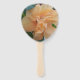 Close up photo of a light orange hibiscus flower on a handheld fan. Waiting for you to personalise it on the blank reverse side