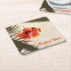 Orange Hibiscus Tropical Floral Square Paper Coaster