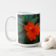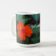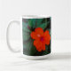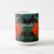 The orange flower in the original photograph by ZoeSPEAK on this Mug is a New Guinea impatiens flower, its intense orange colour almost glowing in the shadows. The delicate petals look superimposed over the dark green leaves of the plant. There is name text which is set for you to personalise, or delete if you prefer.