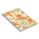 Seamless Vintage floral pattern. Arrangement orange iris flowers by delicately yellow leaves on a light cream colour background. Hand-drawn illustration. Square repeating pattern for fabric