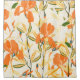 Seamless Vintage floral pattern. Arrangement orange iris flowers by delicately yellow leaves on a light cream colour background. Hand-drawn illustration. Square repeating pattern for fabric