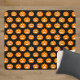 This Halloween home decor blanket features a pattern of cute orange and white jack-o'-lantern pumpkins with a black background colour (can be customised).