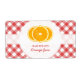Customisable retro jar labels for homemade orange jam, mandarin jelly or preserves with fresh orange slices on red and white gingham tablecloth pattern. Other fruits jam stickers also available.