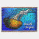“Go with the flow.” Take a lesson from this orange yellow jellyfish floating along in the turquoise blue ocean and let life take its course whenever you cuddle up with this colourful photo art throw blanket. Makes a great uplifting and inspirational gift!