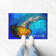 Orange Jellyfish Blue Ocean Welcome Script Modern Doormat