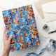 A tattoo style orange koi fish in a backdrop if blue water all around the koi fish