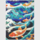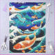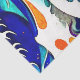 This tissue paper features orange Koi fish swirling around in a huge wave with splashing seafoam, inspired by the The Great Wave off Kanagawa by the Japanese artist Hokusa . The fish are trying to swim upstream against huge foamy waves of turquoise aqua blue, deep orange, navy, black, and cream. Golden flowers decorate the bottom corner of this Asian inspired tissue paper. Painterly effects, similar to watercolor, have been added to this image. This paper would work nicely for decoupage furniture or craft projects, as well as make a nice accent or gifts and retail shopping bags.