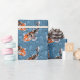 Orange Koi Fish on Blue Waves Patterned Wrapping Paper