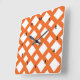 A bold, geometric pattern of large and small white diamonds on an orange background. The vibrant orange forms a lattice which separates the white diamond shapes.