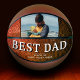 Orange Leather Best Dad Father`s Day Photo Basketball. The background is dark orange leather background. The best dad photo template basketball. Add your photo and names. The text is a trendy typography. You can change any text on the basketball or erase it. A perfect gift for a dad or a new dad on a Father`s day.