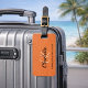 Orange faux leather print as background. Personalise and add your first name, monogram letters and full name on the front. Your contact information on the back. Black text.