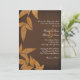 This beautiful wedding invitation features an old vintage paper texture look with images of orange coloured Fall leaves on a dark chocolate brown background. Great for any bride looking for a classic vintage look for their Fall wedding