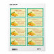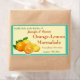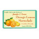 Trio of lemons, one sliced open with a pair of oranges to the front are tucked into the left lower corner of this label with a background of pale yellow all surrounded by a border and background of moderate turquoise green which make this a perfect label to use on your jars of homemade orange lemon marmalade or preserves. The text is in template form so you can change it to whatever you wish.